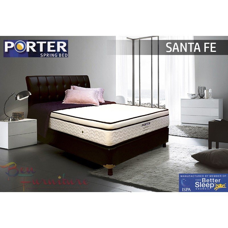 Q: Apa sih keunggulan Porter dengan brand lain? Lebih bagus mana?A: Kami tidak akan membanding-bandingkan dengan brand lain. Yang jelas, Porter sudah LULUS SERTIFIKASI ISPA (International Sleep Products Association) dan telah menjadi member of ISPA. Hal ini berarti kualitas Porter sudah tidak perlu diragukan lagi karena sudah memenuhi standar internasional, juga untuk postur tubuh yang lebih baik dibentuk ketika kita sedang tidur. Q: Kenapa ada di toko lain yang menjual Porter lebih murah daripada disini?A: Untuk informasi, produk yang kami jual LANGSUNG DIKIRIM DARI PABRIKNYA, pun kurir yang digunakan adalah EKSPEDISI PABRIK. Jadi spring bed yang dijual Ben Furniture 100% ORIGINAL Porter dengan harga yang sudah ditentukan.Q: Loh, memangnya spring bed ada yang tidak original?A: Banyak sekali yang menjual kasurnya saja dengan divan dan sandaran yang BUKAN ORIGINAL PORTER. Sehingga, ketahanannya tidak terjamin (hanya beberapa tahun saja). Tentu dari kualitas kayu dan kontruksi berbeda.Q: Apakah ada garansi? Apakah dijamin setelah dipakai beberapa tahun, pernya tidak ambles?A: Kami JAMIN menggunakan kualitas yang terbaik untuk Porter, termasuk pegas (per) nya. Kami juga memberikan GARANSI PEGAS 10 TAHUN, RESMI dari pabrik.Q: Untuk pengiriman bagaimana?A: Pengiriman FREE ONGKIR khusus Jabodetabek. Untuk wilayah di luar itu khususnya Serang, Pandeglang, Bandung, dll kami masih bisa kirim dengan tambahan ongkir. TANYAKAN dahulu mau kirim ke wilayah mana, dan apakah bisa dikirim atau tidak.Untuk tipe SANTA FE, terdapat:1. Lapisan yang import dari Belgia dan antipanas.2. Plush Top: Lapisan diatas permukaan springbed untuk menambah tingkat kenyamanan, sangat tebal (kurang lebih 5cm) jahitannya paten, tidak bisa lepas.Pembeli akan memperoleh: Hanya kasur, ukuran 180x200cm. #springbed #spring #bed #kasur #kasurpegas #kasurbusa #porter #finiland #springbedporter #springbedfiniland #garansi10tahun #jakarta #bogor #depok #tangerang #bekasi #jabodetabek #benfurn