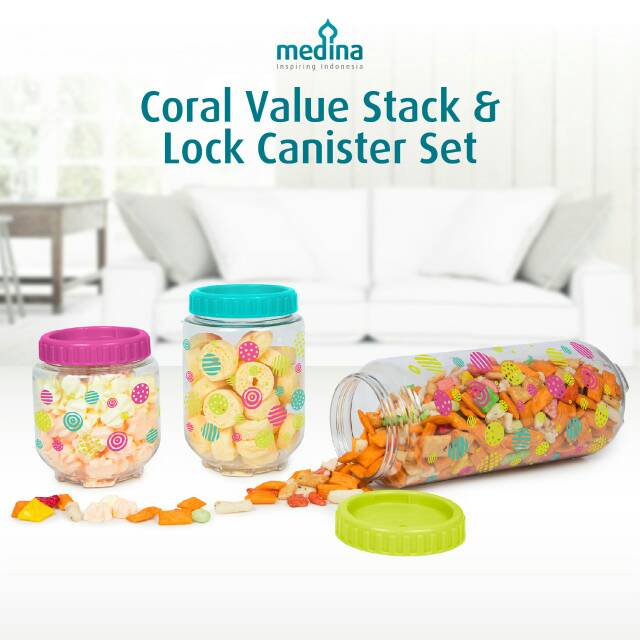 Coral Value Stack & Lock Canister Set dibuat khusus dengan design yang cantik dan lucu dengan sistem pengunci antar toples yang unik, cocok untuk anda dan keluarga saat berkumpul1 set 3 pcs, terdiri dari :- ukuran 700 ml (10 x 10 x 11.8 cm)- ukuran 950 ml (10 x 10 x 14.8 cm)- ukuran 1760 ml (10 x 10 x 25.5 cm)Berat Produk - Volume : 0.9 kg- Real : 0.9 kgHarga179