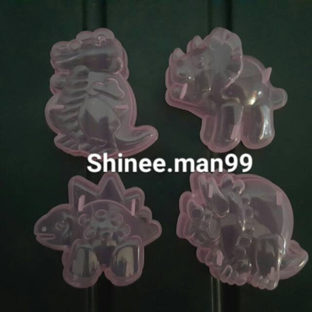 Cetakan dino- warna : pink,kuning,bening,hijau- harga tertera adalah harga per pcs- minimal beli 1 set isi 4 pcs ( model campur tapi dalam 1 warna )- cocok untuk usaha kuliner kekinian,untuk kreasi bekal makanan buah hati anda dijamin nafsu makan anak meningkat- jika ada kelebihan biaya berat,kami akan transfer anda kembaliSebelum order mohon tanya kan stock barang melalui via chat via shopeeKami akan kirim barang dengan kondisi baik dengan standar packing plastik/dus sesuai produkKerusakan karena pengiriman via ekspedisi,tidak kami tanggung.silahkan komplain ke ekpedisi terkait.transfer = setuju.terima kasih,happy shoppi