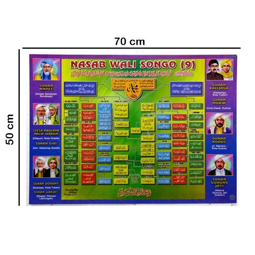 Poster Nasab WalisongoPoster Nasab Walisongo adalah poster bergambar Walisongo. Walisongo atau Walisanga dikenal sebagai penyebar agama Islam di tanah Jawa pada abad ke 14. Mereka tinggal di tiga wilayah penting pantai utara Pulau Jawa, yaitu Surabaya-Gresik-Lamongan-Tuban di Jawa Timur, Demak-Kudus-Muria di Jawa Tengah, dan Cirebon di Jawa Barat.Era Walisongo adalah era berakhirnya dominasi Hindu-Budha dalam budaya Nusantara untuk digantikan dengan kebudayaan Islam. Mereka adalah simbol penyebaran Islam di Indonesia, khususnya di Jawa. Tentu banyak tokoh lain yang juga berperan. Namun peranan mereka yang sangat besar dalam mendirikan Kerajaan Islam di Jawa, juga pengaruhnya terhadap kebudayaan masyarakat secara luas serta dakwah secara langsung, membuat para Walisongo ini lebih banyak disebut dibanding yang lain.Poster Nasab WalisongoNama Produk : Poster Nasab WalisongoGambar Poster : Nasab WalisongoUkuran : 70 x 50 centimeterBerat : 50 gramTeknik Cetak : Offset (BUKAN image hasil download Internet yang lantas dicetak digital printing)Finishing : UV mengkilatStok Produk Poster Nasab Walisongo Sangat Terbatas dan Cepat Terjual.Jika Berminat Dengan Produk Ini Sebutkan Pada Admin Kode Produk : P