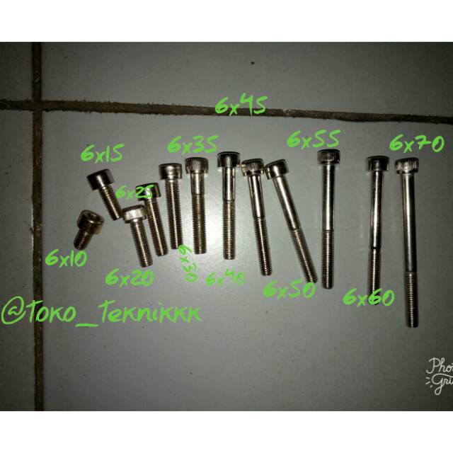 baut L nikel 6mm panjang 10mmmenggunakan kunci L 5mmmenggunakan mur kun