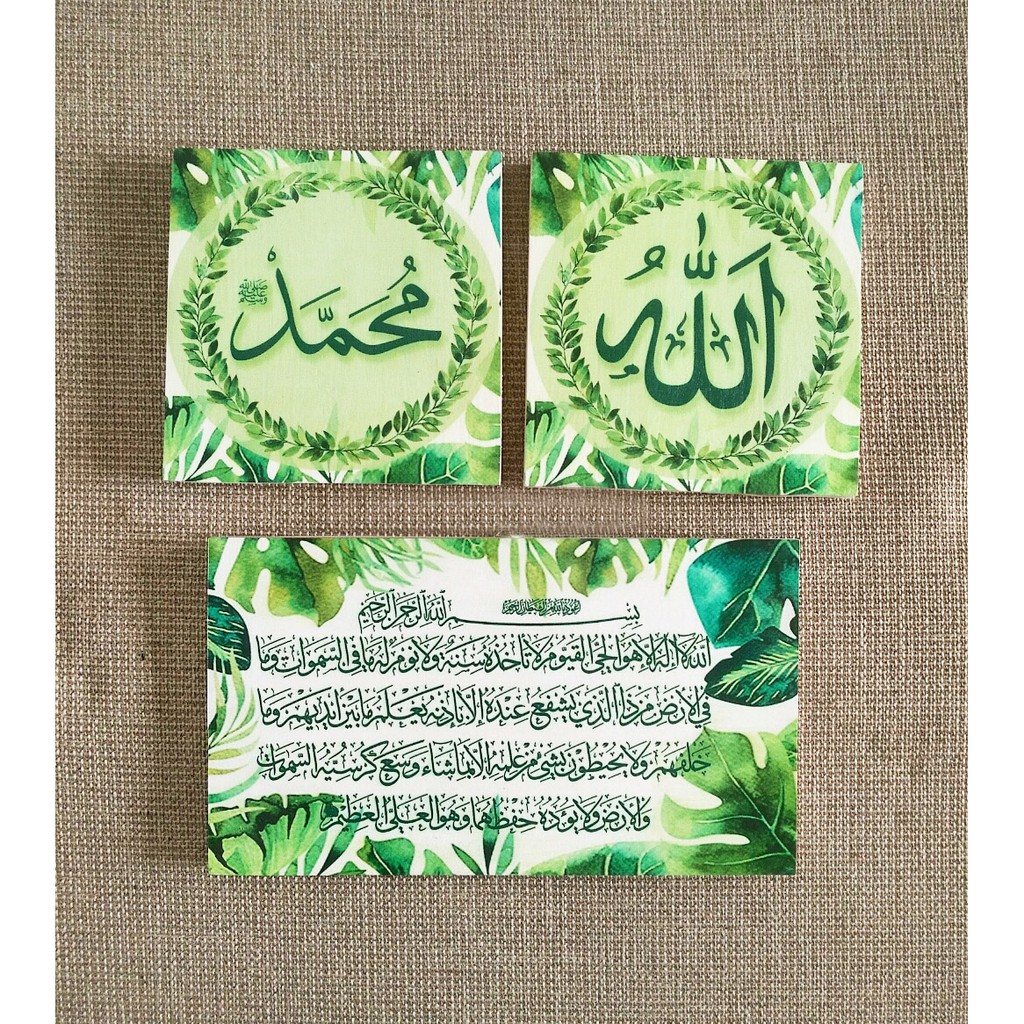 Name: Walldecor Murah Kaligrafi Ayat Kursi Allah Muhammad / Bahan Kayu / 1 Set Isi 3 Pcs / Monstera