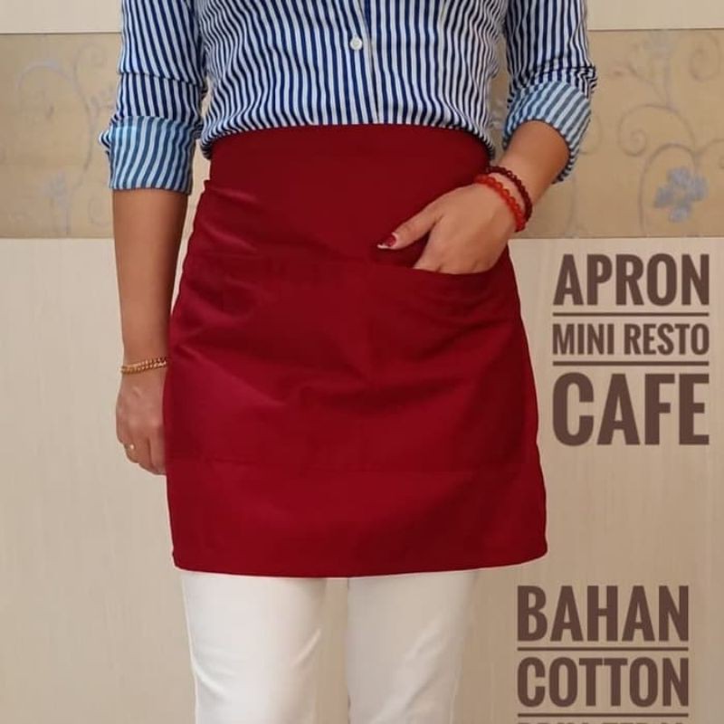 celemek/apron cotton mini banyak digunakan bagi pelayan resto dan caffe. dibuat dari bahan cotton drill dengan kualitas prima. kami jamin harga murah dengan kualitas b