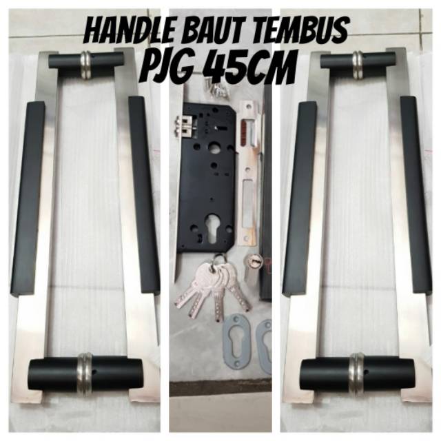 Paket handle pintu stainless panjang 45cm motif kayu asli.-Paket kupu tarung = 2set luar dalam 4 gagang dan 1set body pelor-Paket pintu satu = 1set luar dalam 2 gagang dan 1set body pelor- HANDLE ONLY = 1set luat dalam 2 pegan