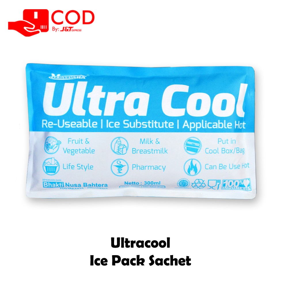 Ultracool Sachetadalah pengganti es batu yang hemat, prakstis dan ekonomis.Daya tahan lebih dari 8 jam dalam coolerbag/coolbox (tergantung suhu udara luar dan ketebalan alumunium foil dalam coolerbag)Dapat di gunakan berulang selama kemasan tidak bocorUkuran MediumUkuran : 19cm x 11,5cm x 2cmBerat isi netto : 300grBerat barang : 320 gruntuk pembekuan pertama, diusahakan 48 jam duluFungsi :- menjaga agar ASI perah tetap dingin di suhu 0'- untuk menjaga makanan/minuman tetap dingin/hangat- menjaga ASI tetap beku di freezer saat listrik matiCara penggunaan :1. Untuk dingin- pada penggunaan pertama bekukan ice gel minimal 2x24 jam, untuk seterusnya, 24 jam- letakkan ice gel dalam coolerbag dan tutup rapat- bekukan kembali ice gel saat sudah tidak dingin 2. Untuk Hangat- rendam ice gel ke dalam air yang sudah mendidih selama 5-10menit- angkat, dan masukkan dalam wadah (coolerbag/coolerbox) sesuai dengan kapasitasnya- panaskan kembali apabila sudah tidak hangat.NOTE :KHUSUS JASA PENGIRIMAN REGULER. JIKA MEMAKAI EKSPREDISI YES AKAN TETAP DIPROSES KE EKSPEDISI REGULER#icepack #ultracool #icecool #icecoolpack #icegel #coolpack #icecooler #bl