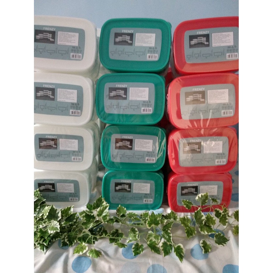 Ready putih saja yaFrenzy Food StorageReady stock Frenzy Food Storage yang lagi hitz & kekinian bangettt. isi 12pcs / set*3pcs 650ml = size 125x125x65mm*3pcs 800ml = size 125x125x85mm*3pcs 1500ml = size 215x156x66mm*3pcs 2000ml = size 215x156x86mmMURAAAAHH pake bangettt 1set isi 12pcs yaaaaMaterial: Plastik PolypropyleneAman buat Dishwasher (rak paling atas), Freezer & Microwave (panaskan dalam keadaan tutup terbuka)FDA approvedBPA freeWarna lain tergantung stok di toko yaSUDAH TERMASUK PACKING BUBBLE WRAP YAREADY SEMUA WARNA YAPUTIH, HIJAU TOSCA DAN MERAHSilahkan cantumkan pilihan warna saat checkout yaBahannya tebeeell murmer tapi ga murahaaanKualitas di atas Ikea Pruta, di bawah TupperwarePraktis buat nyimpen stok makanan di kulkas + keringan jug