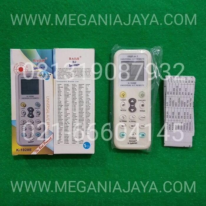 REMOTE AC UNIVERSAL / MULTI | REMOT AC | BAOJI K-1028E#READY STOCK#,#HARGA GROSIR#Baoji K-1028E Remote AC Universal adalah remote serbaguna yang dapat digunakan untuk pengganti remote AC Anda yang hilang atau rusak. Remote AC Universal K-1028E ini sangat mudah karena sudah dilengkapi dengan kode untuk berbagai macam jenis dan merk AC. Design bentuk yang pas ditangan dan disesuaikan untuk kenyamanan Anda. List kode dapat Anda lihat pada gambar detail.#Melayani pemesanan dalam jumlah banyak / partai besar untuk dijual kembali#Terima K