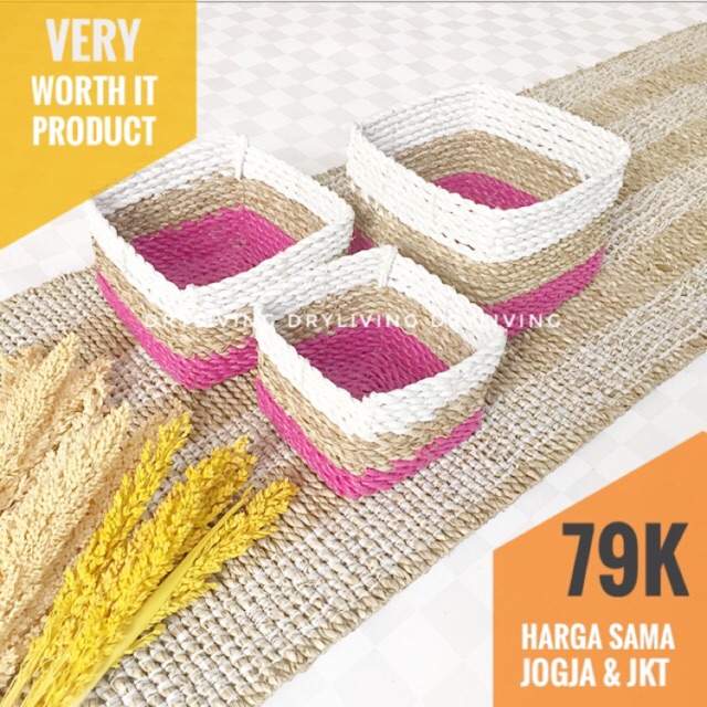 New Commers at dry.LivingMini Box Triple PinkEarly Bird Price IDR 79k/set.Set isi 3Sisi 11cm, 14cm, dan 18cm.Tinggi 9,10, dan 12cm.Packet termurah at dry.livingSo grab it fast Momssss.. #homedecor #keranjangseagrass #coverpot #keranjanganyaman #seagrassbasket #seagrass #homeidea #ideaonline #shabbyhome #instadesign #shabbyhome #scandinavianhome #mynordicroom #instad